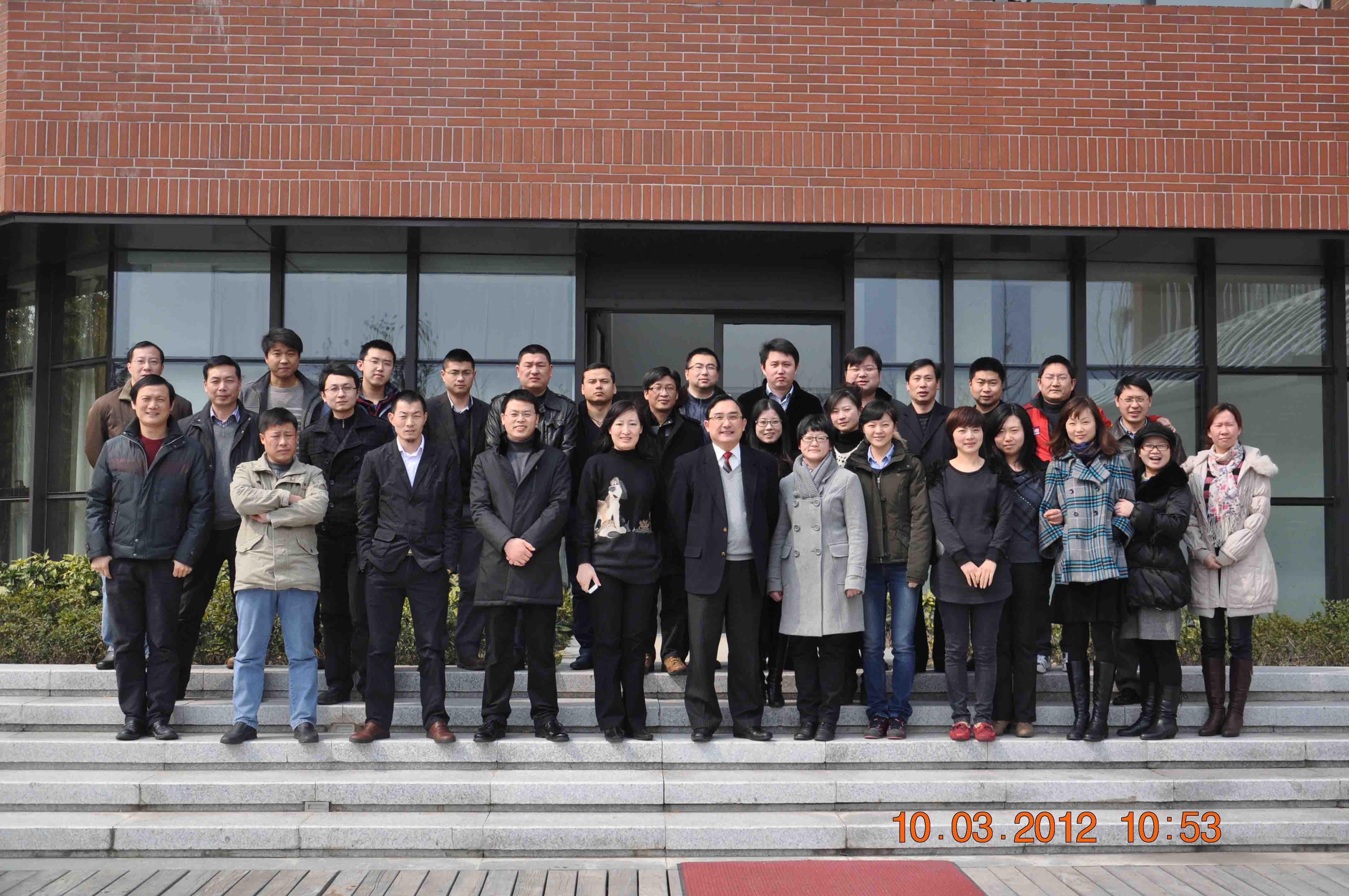 图为课间休息时间蔡淳华教授与MBA班学员一起合影留念。