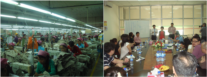 常荣实业股份有限公司,五年前入驻柬埔寨金边,现有员工五千余人,主要从事纺织服装加工企业,年生产加工能力960万套。由于方世俊企业家的超前意识和决策,较早地实现生产加工的梯度转移,利用国际资源,较低的生产成本和劳动成本,真正做到了“两头在内,中间在外”的方针,实现了企业稳步发展,可以说这是一个成功的典范。