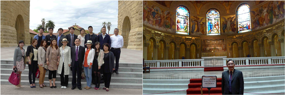 4月25日上午9:00代表团在硅谷商学院的培训主任陪同下参观访问了了世界著名的斯坦福大学,并一起合影留念。