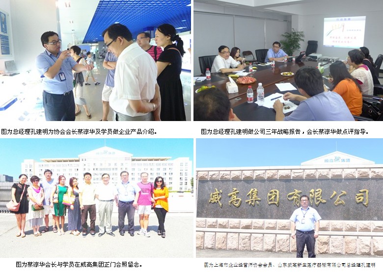 2012年8月24-26日,上海市企业经营师协会会长蔡淳华率领部分会员及MBA学员赴会员单位山东威高集团参观学习,山东威高集团是全国的著名企业,胡锦涛总书记及党和国家领导人先后前去视察。此次,上海市企业经营师协会着重对协会会员威高集团新生医疗器械有限公司深入调研,感到十分荣幸,总经理孔建明专程陪同介绍。
