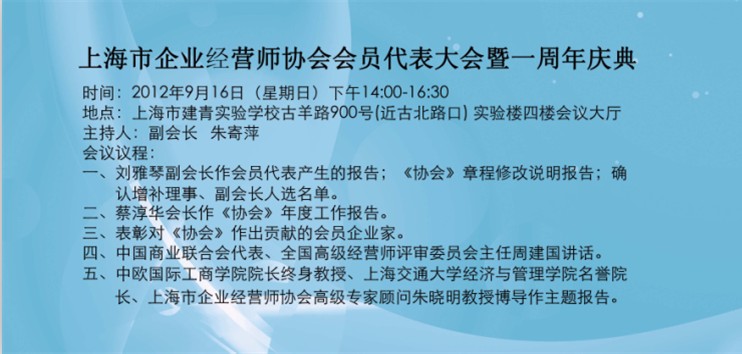 上海市企业经营师协会会员代表大会暨一周年庆典活动安排