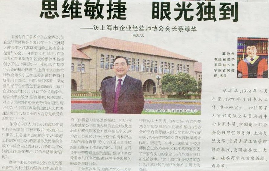 上海市企业经营师协会,自2011年9月成立,入驻在长宁区,会长蔡淳华有幸作为长宁区的人大代表,亲身感受到长宁区的飞速发展。由于长宁区的领导积极抢抓机遇,努力稳定增长,加快结构调整,在当前宏观经济复杂多变,外部的经济环境千变万化不确定因素不断增多,经受住各种严峻的考验。今年上半年,主要经济指标实现“双过半”,全区财政收入完成143亿元,同比增长11.4%,区级财政收入完成56.6亿元,同比增长9.3%,占全市中心城区名利前茅,取得了来之不易的成绩,成绩喜人、令人振奋,更要倍加珍惜。作为一个人大代表,为此,感到光荣和自豪,也理应,有责任、有义务要为长宁的发展尽心、尽责和尽力,把协会的平台资源融入到长宁的经济发展中去,为长宁招商引资发挥桥梁纽带作用。