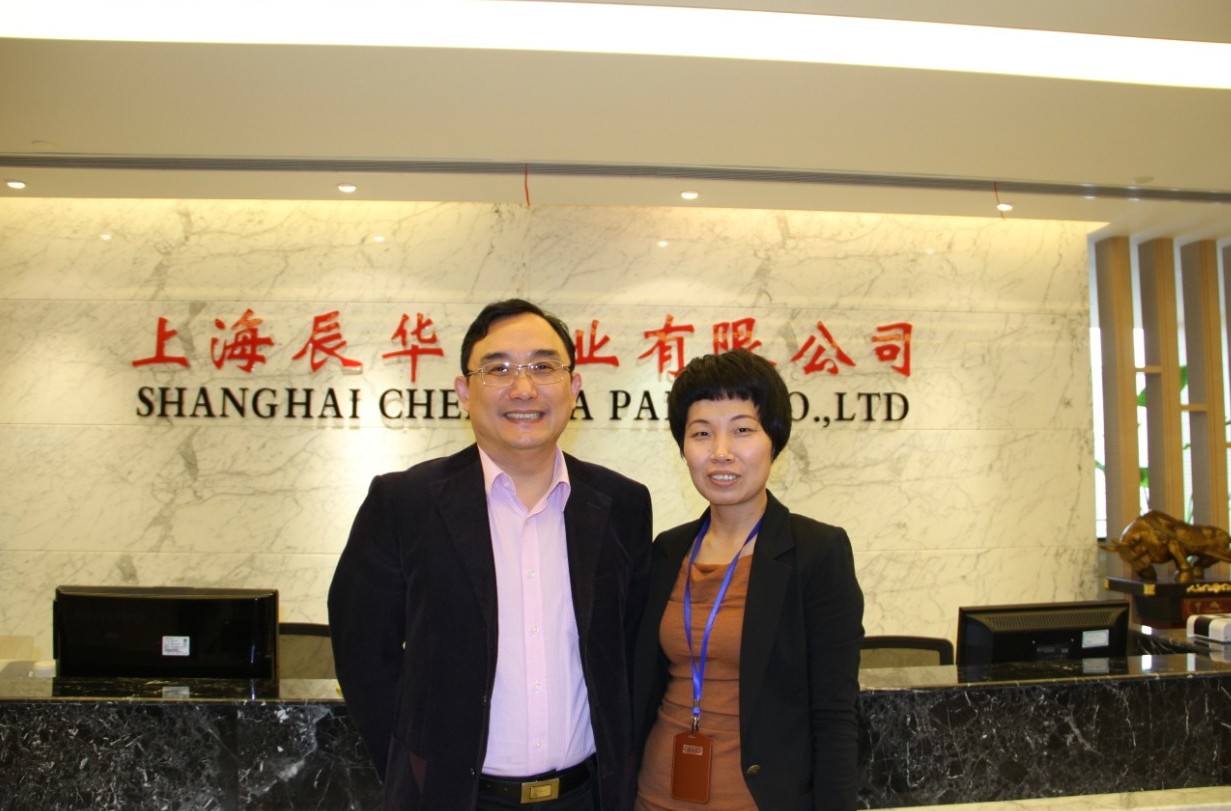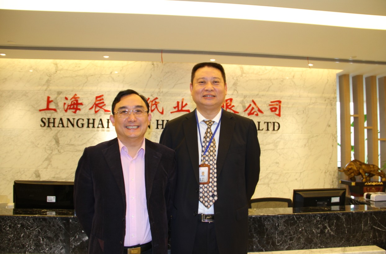 上海辰华纸业有限公司副总裁徐峰与上海市企业经营师协会会长蔡淳华合影留念