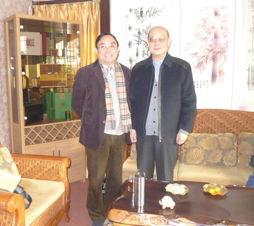 上海市企业经营师协会会长蔡淳华向协会名誉会长、全国政协委员,著名的社会学家邓伟志合影留念