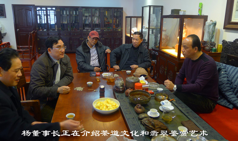 2013年2月21日(星期四)下午15:00正,上海市企业经营师协会一行六人,前往闵行华翔路1969号,上海锦霆投资管理有限公司去考察。上海市企业经营师协会高级顾问、上海市拍卖协会秘书长周建国、上海市企业经营师协会会长蔡淳华、副会长周放、秘书长杜锡全、秘书处主任尹鸿、会长秘书郑鑫梁等去考察调研。上海锦霆投资管理有限公司董事长杨顺生、副总经理倪小平等人专门接待和介绍,杨顺生董事长介绍公司专营翡翠状况和展示了公司翡翠的珍品。给参观的领导们大开眼界,享受了翡翠艺术大餐。