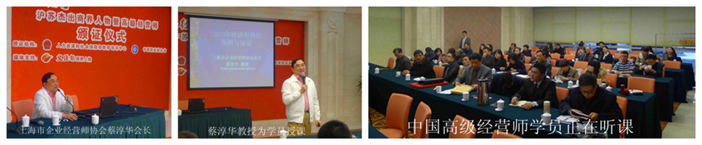 3月24日(星期日)下午13:00—14:00在中国浦东干部学院浦东新区前程路99号教学中心108教室,由中国商业联合会和中华人名共和国人力资源和社会保障部教育培训中心举办的288期中国高级经营师开学典礼暨毕业典礼办证仪式;14:00—17:00特邀美国硅谷商学院首席教授及上海交大、复旦多所院校特约教授蔡淳华先生讲授《2013年经济形势的预测与展望》