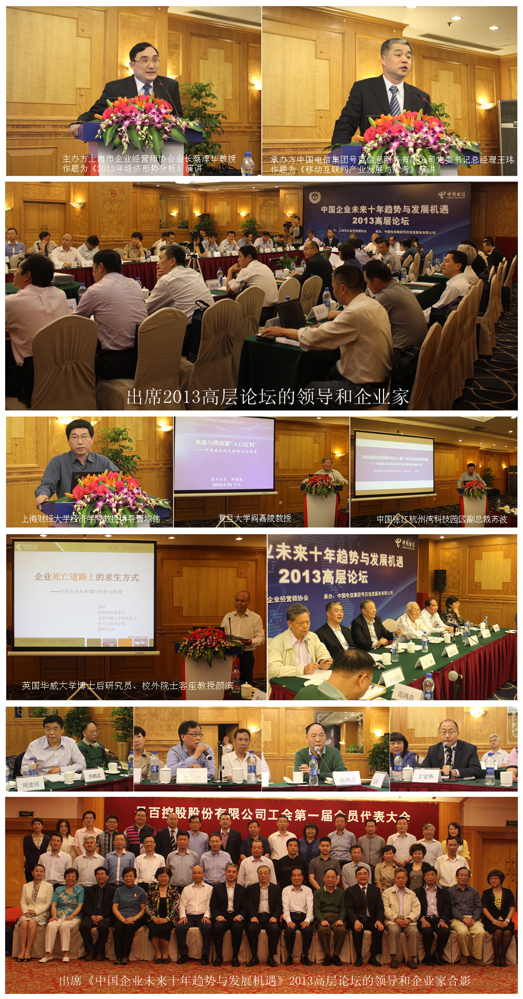 2013年5月21日(星期二)下午14:00--17:30, 由上海市企业经营师协会主办,中国电信集团号百信息服务有限公司承办,在浦东松林路357号通茂大酒店四楼会议厅隆重举行了主题为《中国企业未来十年趋势与发展机遇》的2013高层论坛。