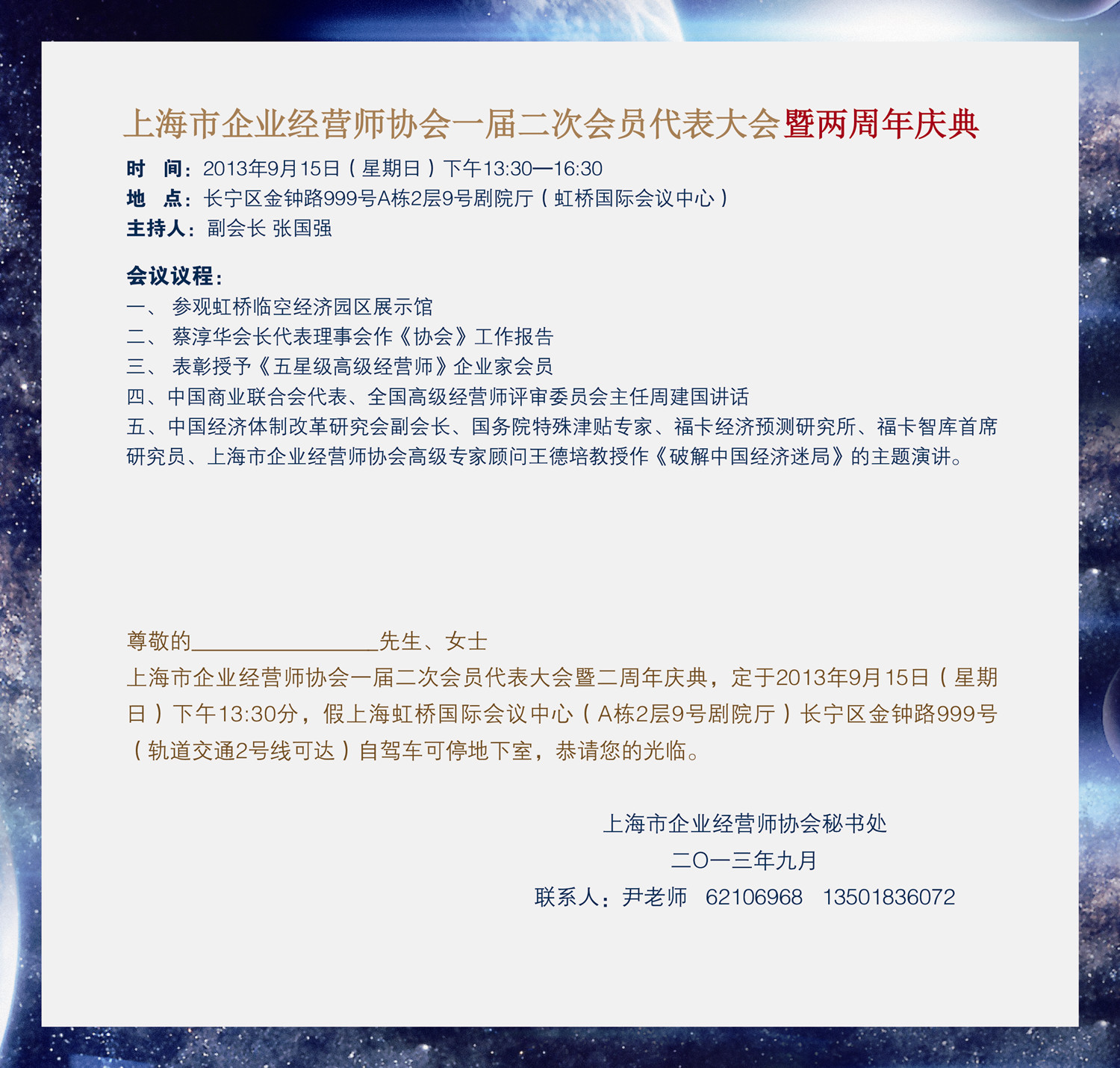 上图为上海市企业经营师协会一届二次代表大会暨成立两周年庆典邀请函内页