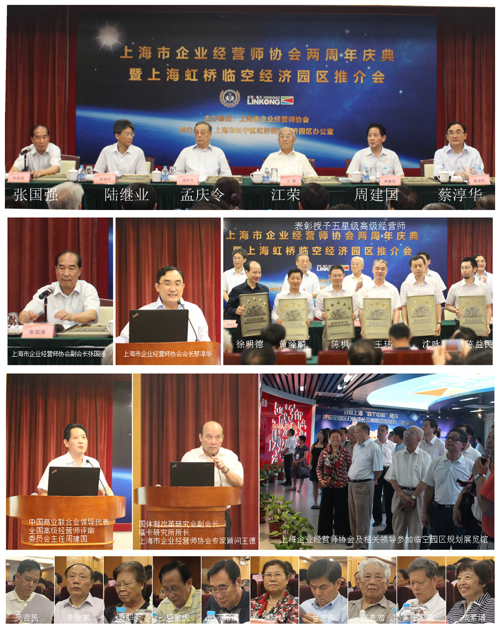 二、表彰授予五星级高级经营师;他们是中国电信集团号百信息技术服务有限公司党委书记总经理王玮;润峰豪华邮轮董事局主席陈枫;金茂集团董事局主席陈益民;上海建工集团第二建筑集团总经理沈咏;上海新长宁集团党委书记董事长黄经麟;上海魔域商业投资管理公司徐明德。