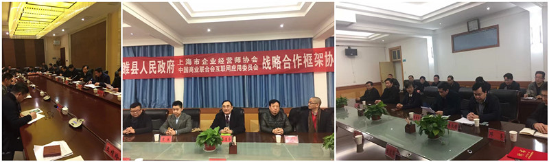 下午又分专题分头进行深化和对接,16:30 - 18:00,在睢县人民政府办公楼三楼会议室,又举行了汇总研讨,并由睢县人民政府与上海市企业经营师协会签订协议建立全面战略合作伙伴;同时,又与中国商业联合会互联网应用委员会签订全面合作协议。同时,又进行睢县政府由县委书记授证,特聘蔡淳华教授为经济发展高级顾问的仪式,整个三天考察活动紧凑、高效,取得圆满成功!