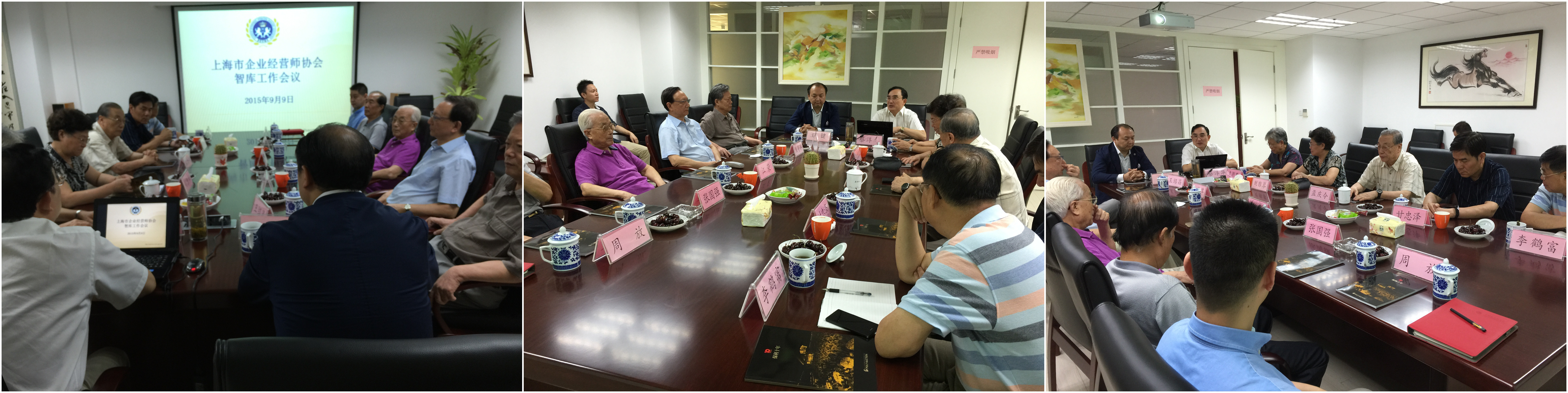 2015年9月9日(周三)下午14:00-17:30,上海市企业经营师协会在天山路600弄思创大厦4号楼22层C、D座大会议室,召开经营师协会智库工作会议。会议内容:1、蔡淳华会长通报协会换届改选工作;2、王键企业家作为中国侨胞精英代表参加“中国反法西斯70周年9.3阅兵观赏礼感”。出席会议的智库领导:江荣、孟庆令、刘雅琴、朱寄萍、王绍昌、惠熙荃、李鹤富等;副会长:张国强、甘忠泽、周放、秘书长杜锡全等及相关企业家徐龙标、刘恒及工作人员冯晓牧、何丽平、王伟芳等。
