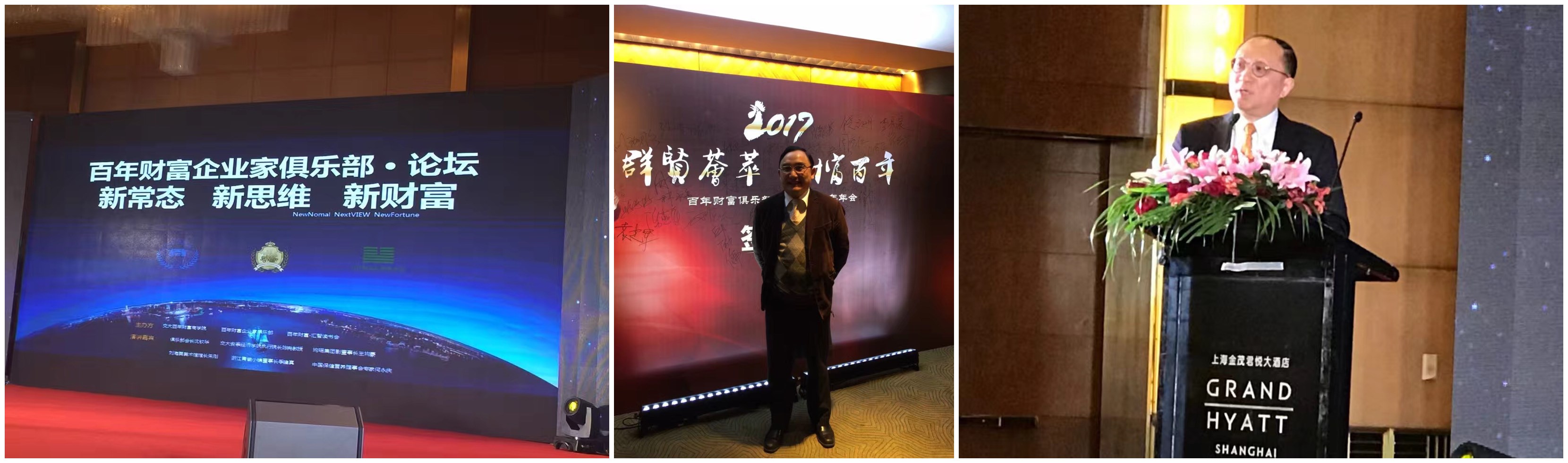 2016年12月12日(星期一)下午13:30在金茂大厦君悦大酒店举办的百年财富企业家俱乐部年会论坛,主题为《新常态新思维新财富》。论坛邀请到交大安泰经济学院执行院长陈宪、均瑶集团王均豪、刘海粟美术馆馆长等一起出席论坛。上海市企业经营师协会会长蔡淳华特邀出席。