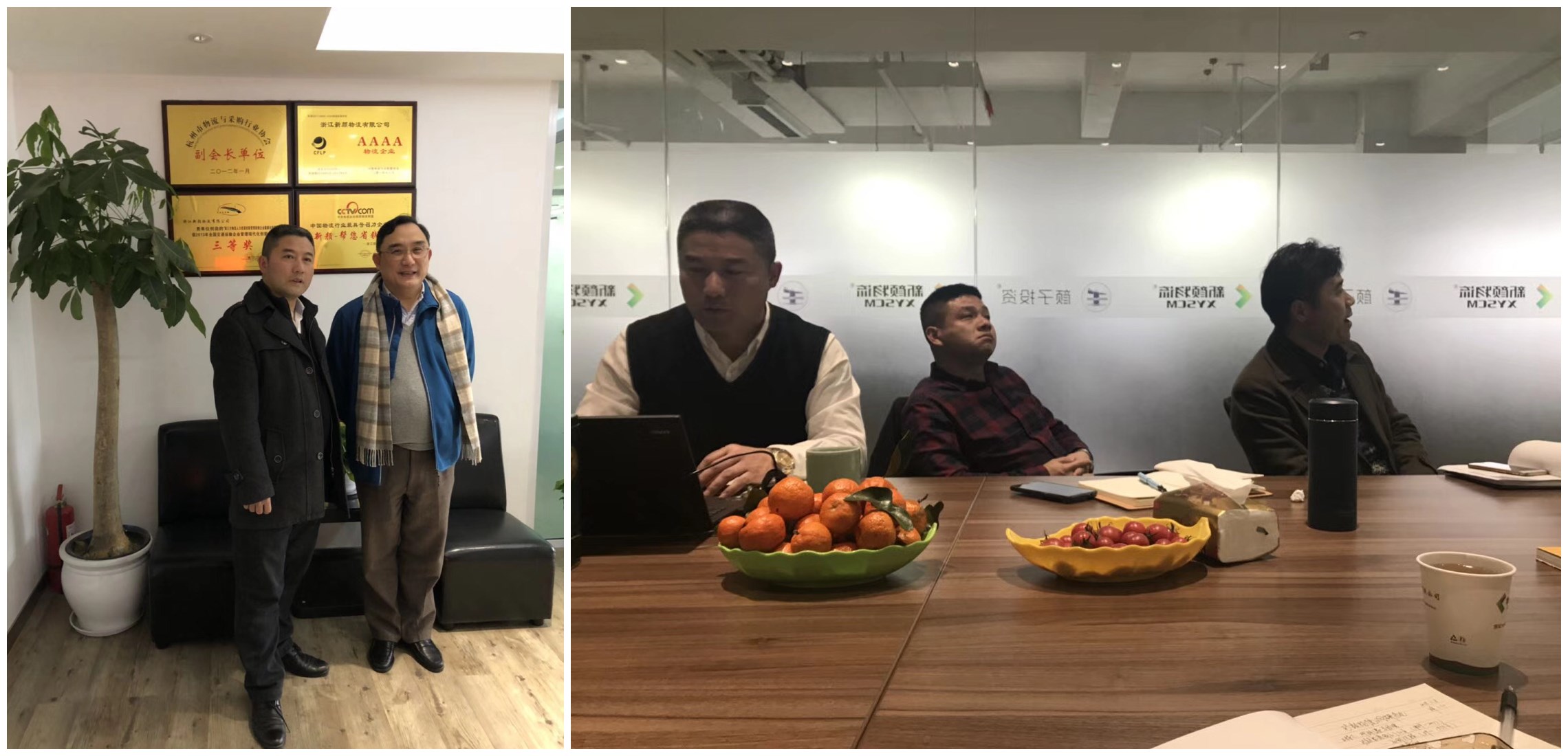 2018年3月8日(星期四)下午,上海市企业经营师协会会长蔡淳华教授,前往浙江新颜物流有限公司调研交流。新颜物流公司总经理邓邵涛、邓勇、人力资源总监胡宇全、财务总监吴晓剑、董事会秘书颜楠等热情接待。