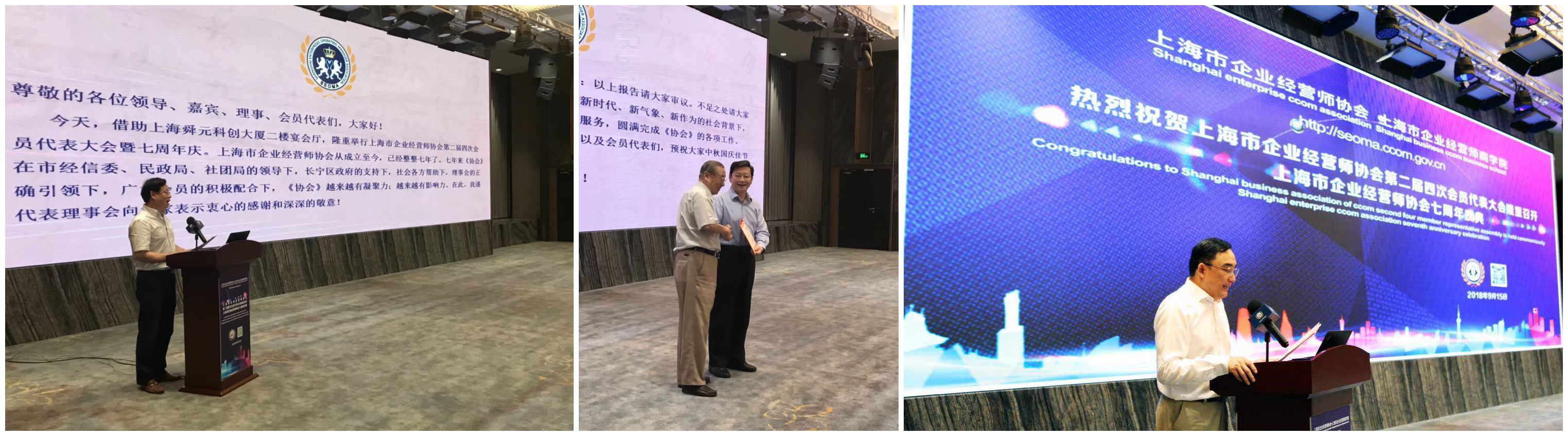 上海市企业经营师协会第二届四次会员代表大会暨七周年庆典活动,于2018年9月15日(星期六)下午13:45 - 16:30在上海舜元科创大厦2楼宴会厅(上海市长宁区天山西路799号宴会厅)隆重举行。