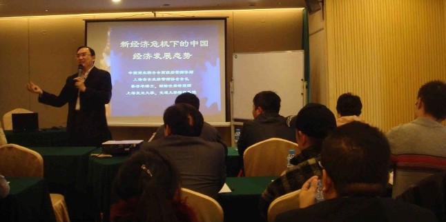 2011年11月26日(星期五)下午13:00—17:00在长寿路1086号美豪酒店六楼演讲厅,中国商业联合会在上海举办的第273期的中国高级经营师资质培训班。由中国高级经营师导师、上海市企业经营师协会会长、上海复旦大学、交通大学特邀教授、美国硅谷商学院等海外著名大学的特邀教授蔡淳华,为高级经营师们上第一课,授课题目《在新经济危机下中国经济的发展态势》。在讲课中蔡教授告诫广大高级经营师企业家要“冷静思考、沉着应对”。