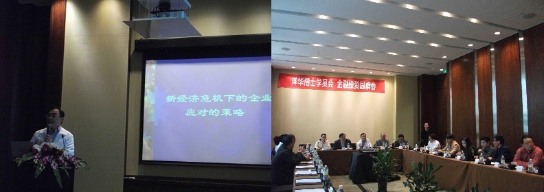 2011年10月29-30日在苏州洲际酒店会议室,由洋华博士学友会举行《金融投资圆桌会》,上海市企业经营师协会会长、美国硅谷商学院首席教授博导蔡淳华作了题为《新经济危机下企业应对的策略》主题报告。博士班的学员纷纷展开研讨和头脑风暴,最后由蔡教授为研讨会作点评。
