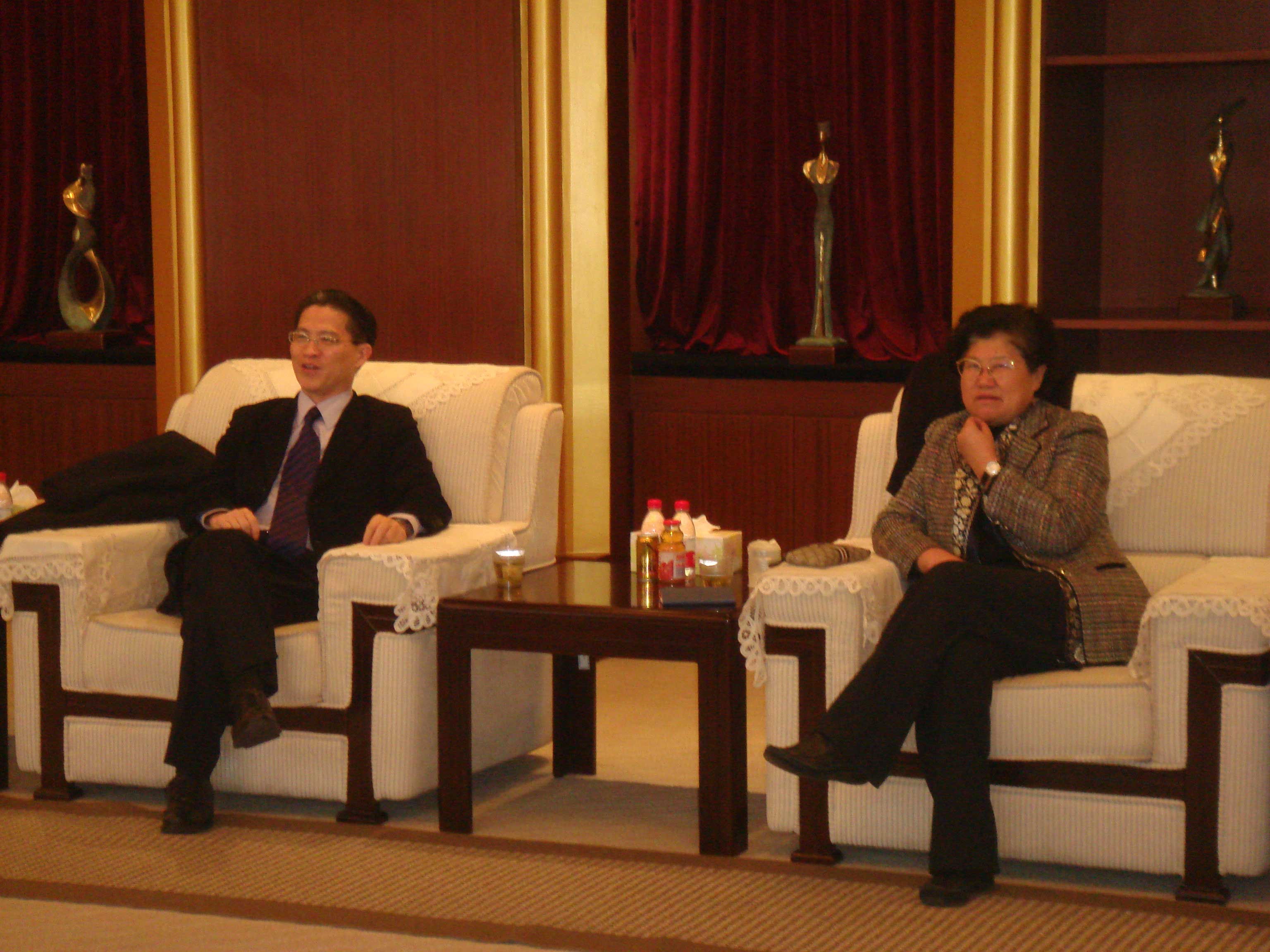 全国政协常委、上海市政协会副主席周汉民与上海市长宁区人大主任刘雅琴在贵宾室亲切交谈。